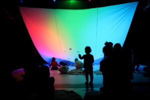 - Interaktivna plesno-vizualno-taktilna predstava: Rumena pika na nebu